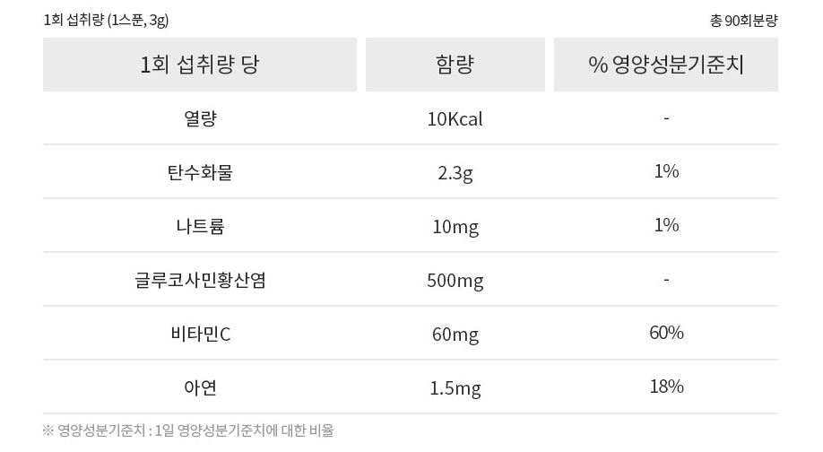 - 관절의 주성분인 콜라겐합성이 잘되도록 비타민C, 구리, 아연이 포함