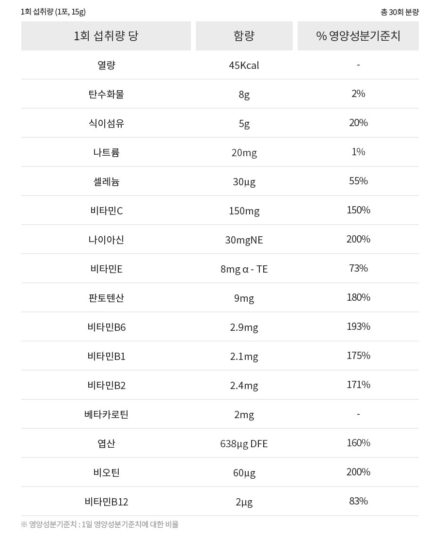 • 아침 식사대용으로 충분하며 식사하시는분들은 식사와 30분~1시간 후에 드세요.