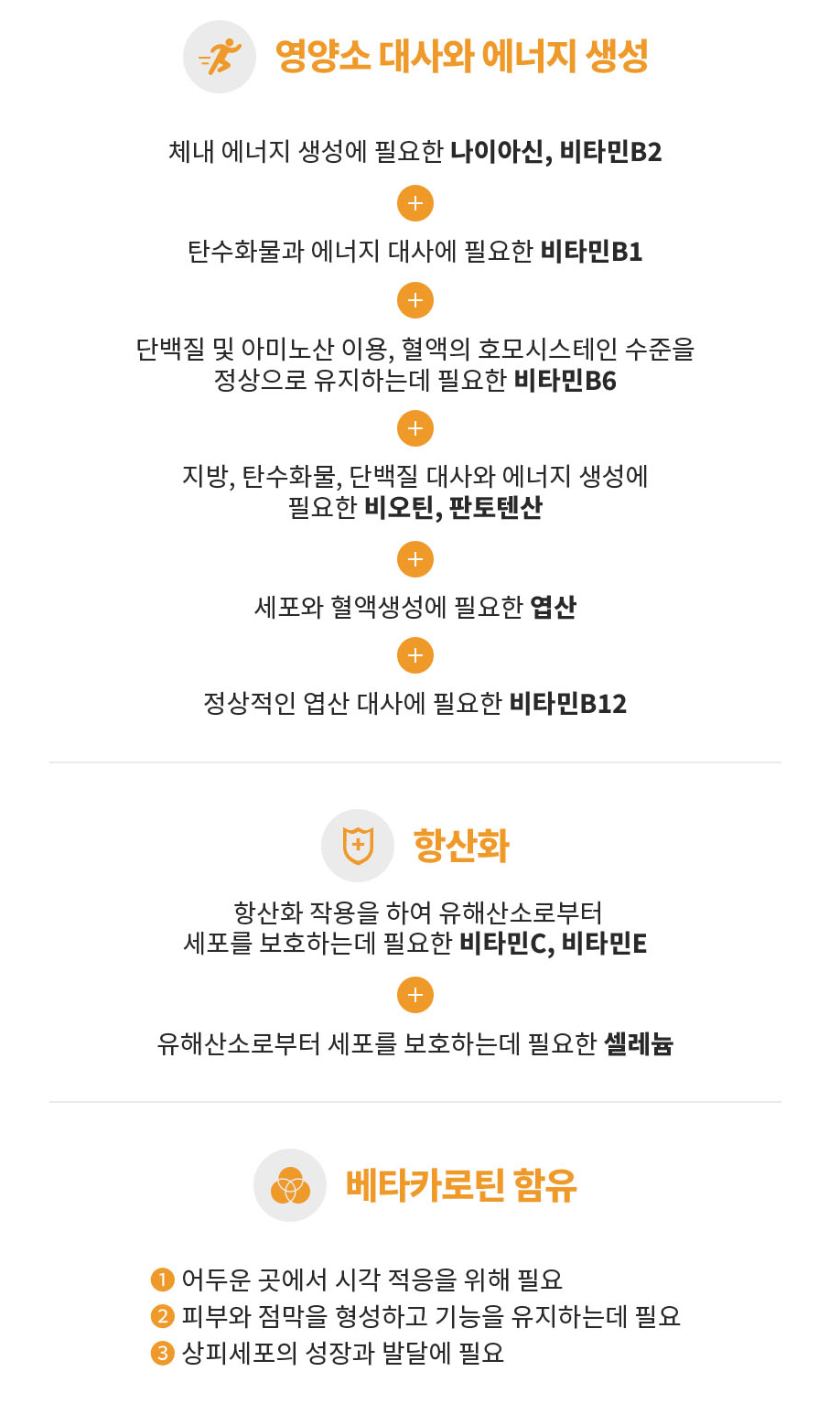 • 비타민 B2, 나이아신 : 체내 에너지 생성에 필요