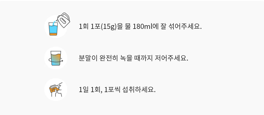 • 물의 온도는 효소가 있으니, 정수물이나 미지근한물에 드세요.(뜨거운 물은 효소가 죽습니다.)